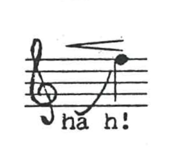 Translation: “Laughter is a kind of convulsive spasm that allows the voice to escape only in jerks or shocks. It then travels, rising and falling, over a rather irregular but fairly wide range. Breathing must be renewed frequently and quickly, and this need, combined with the tightening that occurs in the organ, produces a fairly strong rasp with each inhalation. In musical pieces, one should avoid as much as possible the stiffness and dryness of the written note; on the contrary, one should imitate the abandon and lilting quality of natural laughter. A frank and musically rhythmic laugh can only be achieved after long practice.”
