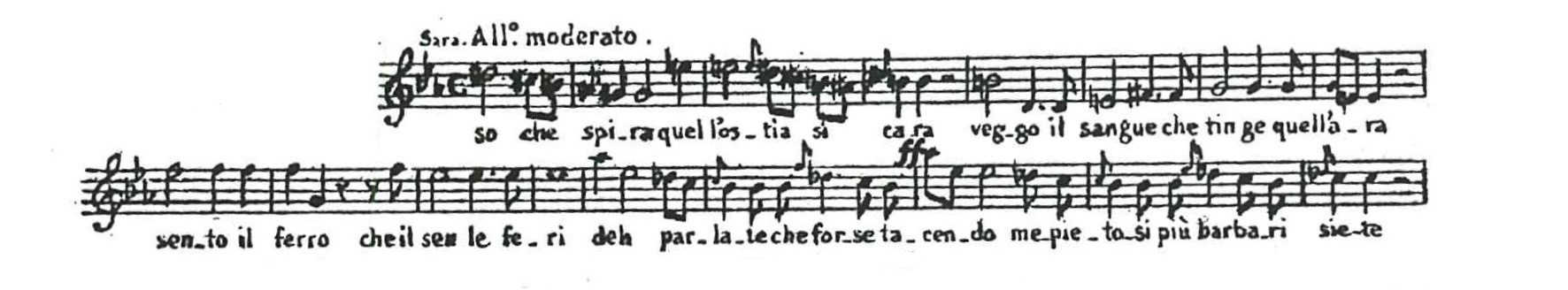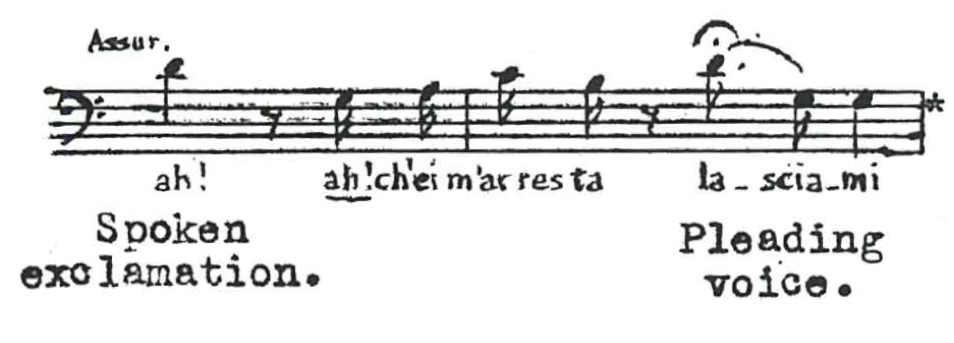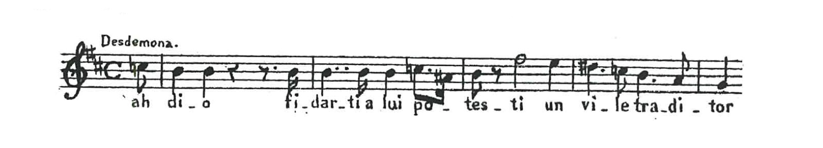 Chest notes above F [F1] are unbearable when they are used in a bright timbre in moderate songs; but here, precisely because of their shrill effect, they are suited to the accents of despair and rage. One could say as much of the passage:
