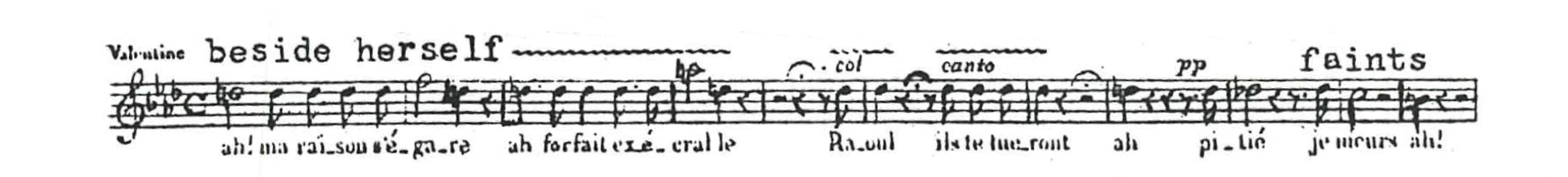 “Do not sing, but declaim with a heart-rending voice and in the greatest disorder, the words: Raul! they will kill you then the breathing oppressed and failing, finish the words ah! mercy! I am dying! ah!”