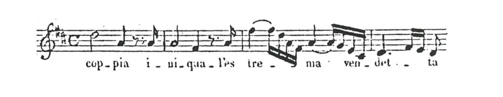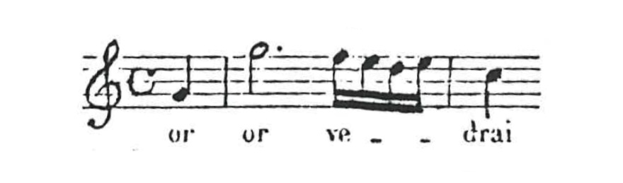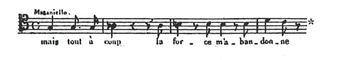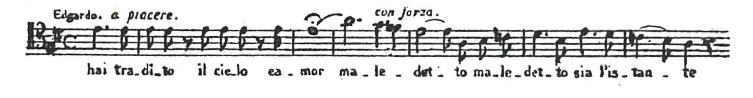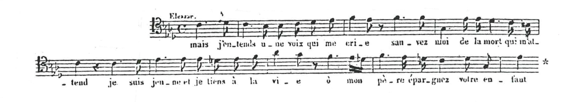 Les notes de poitrine au-dessus du fa, sont insupportables lorsqu’on les emploie en timbre clair dans les chants modérés; mais ici, en raison même de leur effet criard, elles s’approprient aux accents du désespoir et de la rage. On pourrait en dire autant du passage: