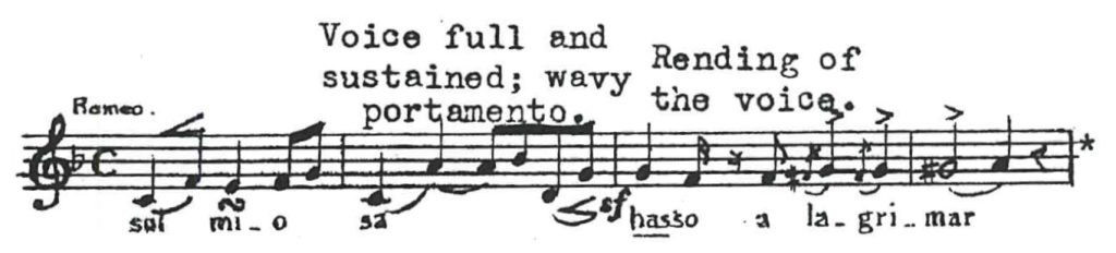 Translation: “Let us add, finally, that exhalation also produces a kind of friction or tearing of the voice; but although the effect is dramatic, the practice is too taxing for us to dare recommend it. All these techniques formed by inhalation and exhalation combine in different ways, as can be seen in the following examples.”