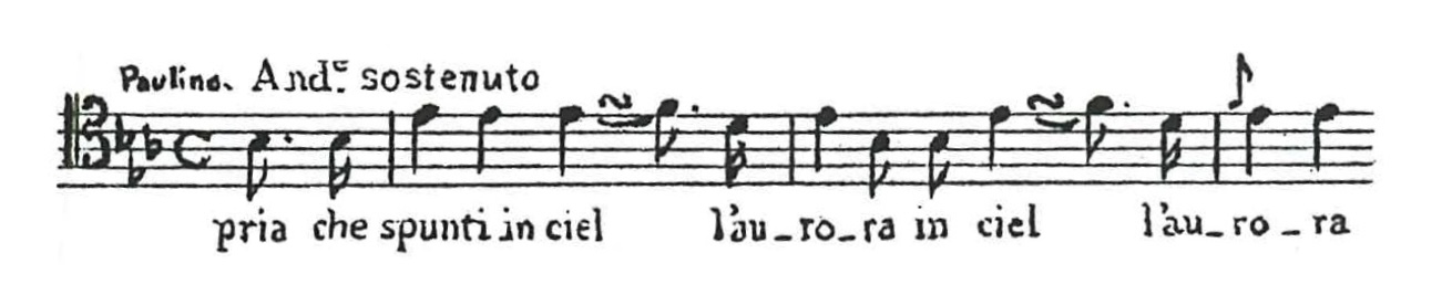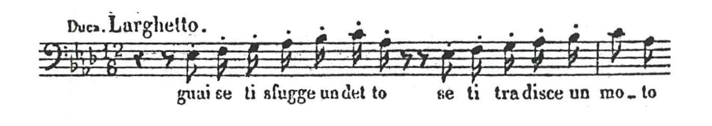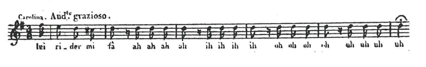 Translation: “Laughter belongs exclusively to opera buffa; opera seria can only admit it in a painful sentiment disguised by forced laughter, or in madness.”