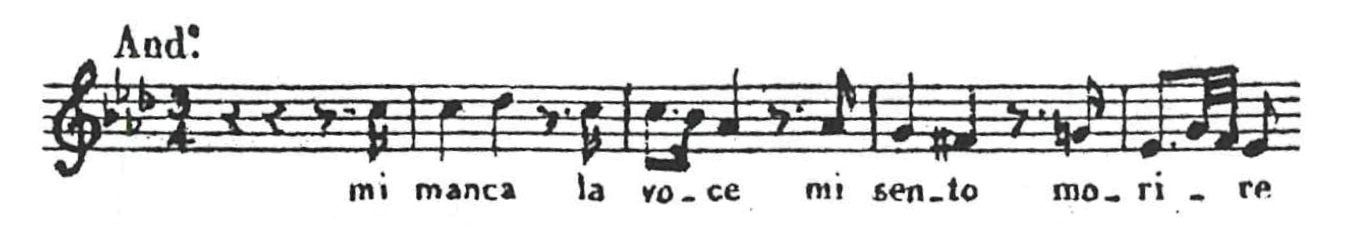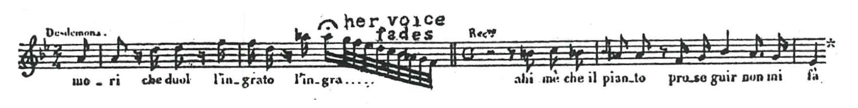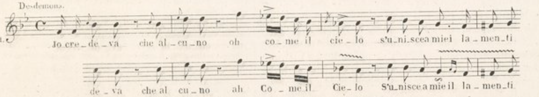 Translation: “But finally tired of shedding mournful sighs and tears, the afflicted maiden died—ah!—beside that willow! But finally tired of crying, the afflicted maiden died, died… What grief! The ungrateful one… the ungrateful one… Alas! Tears will not let me go on.”